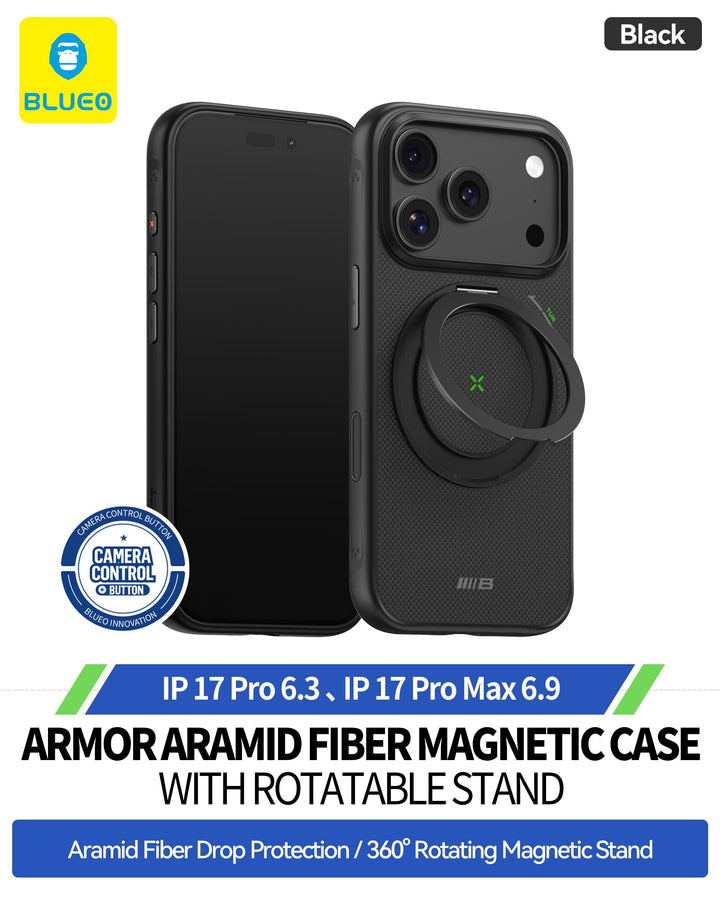 Mükemmel kenar koruması, manyetik şarj uyumu ve modern tasarımıyla Blueo Armor Aramid Fiber kılıf, cihazınızı korurken tarzınızı da öne çıkarır.