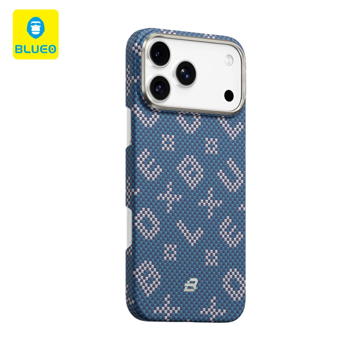 Blueo Gilded Tactile Wowen iPhone 17 Pro Max Uyumlu Magsafe Özellikli Aramid Fiber Magnetic Telefon Kılıfı - Blue
