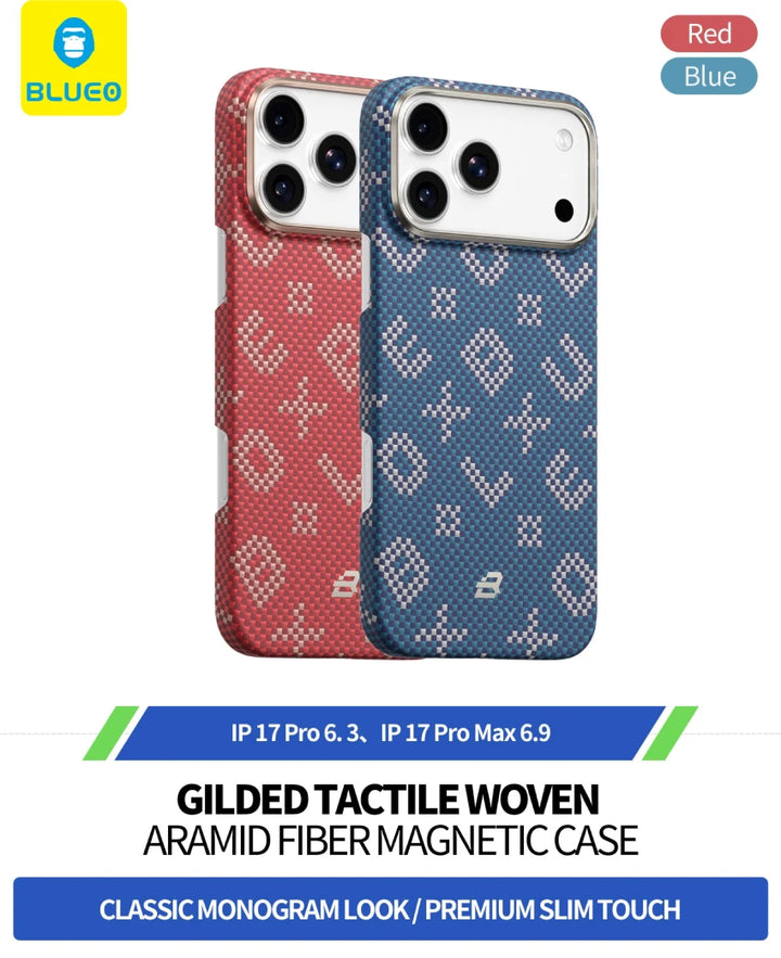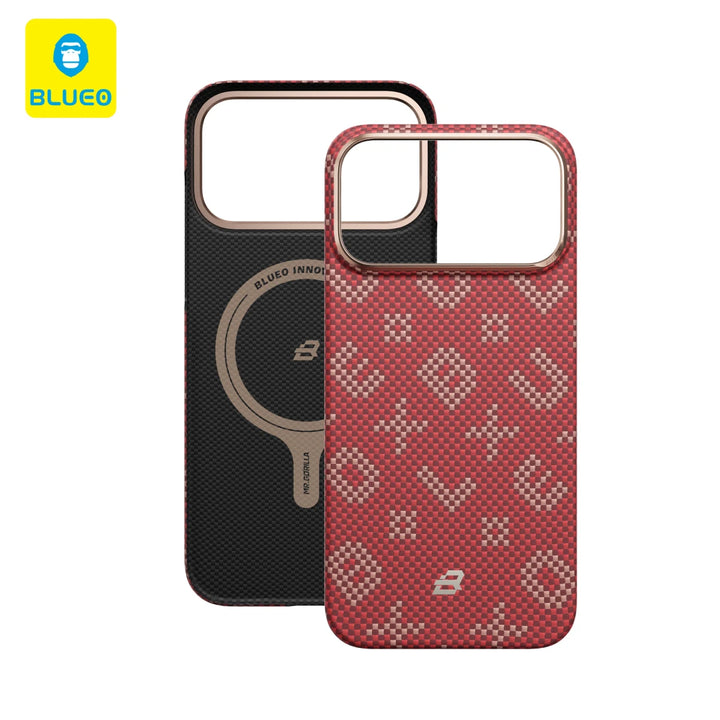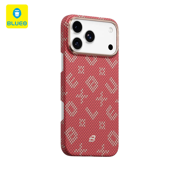 Yeni iPhone 17 Pro Max için özel olarak geliştirilen Blueo Red Gilded Tactile Woven Aramid Fiber Magnetic Kılıf,